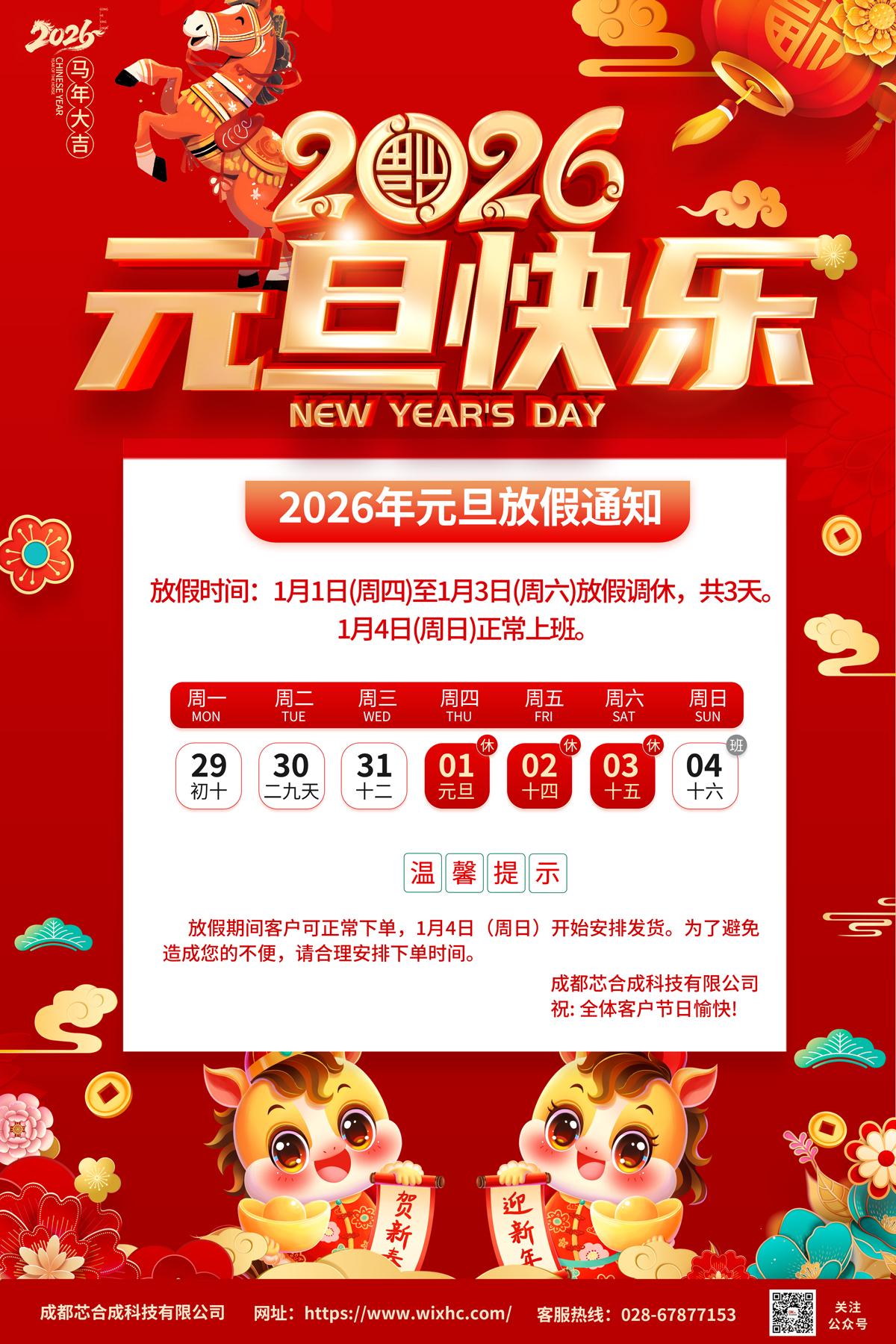 芯合成2026年元旦放假通知