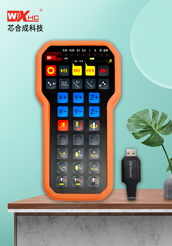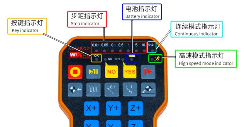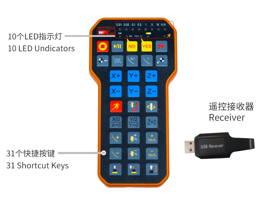 2.首先将USB接收器插入电脑USB接口,手轮安装上电池,按下手持端电源按钮打开电源,连接成功后开始使用。